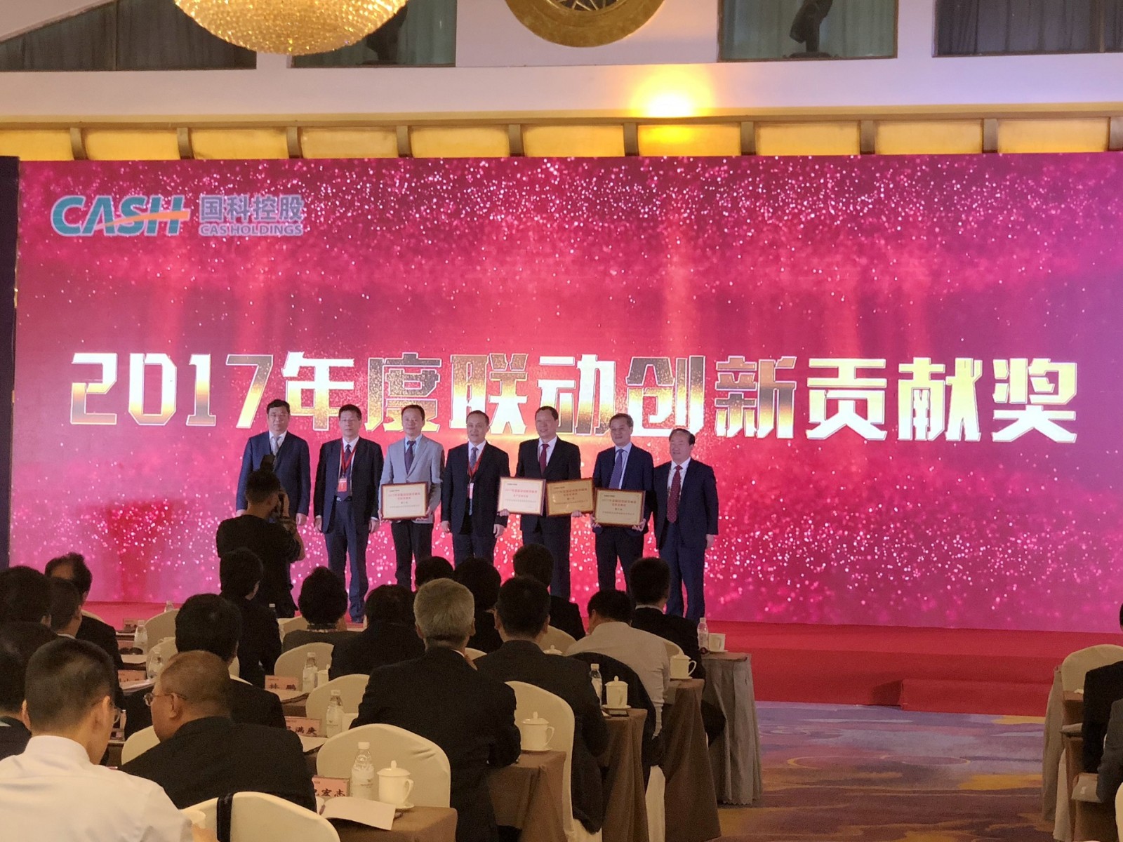 4月17日至18日,中國科學(xué)院控股有限公司(以下簡稱“國科控股”)以“進入新時代、實施新舉措、實現(xiàn)新發(fā)展”為主題召開了2018年度工作會,表彰了一批在科技創(chuàng)新與實現(xiàn)資本增值方面業(yè)績突出的企業(yè)。我公司榮獲了2017年度聯(lián)動創(chuàng)新貢獻獎“創(chuàng)新發(fā)展獎第一名”和“資產(chǎn)證券化獎”。中國科學(xué)院副院長、黨組成員張濤親自為我公司頒獎,我公司黨委書記、董事長王曉宇代表公司上臺領(lǐng)獎。