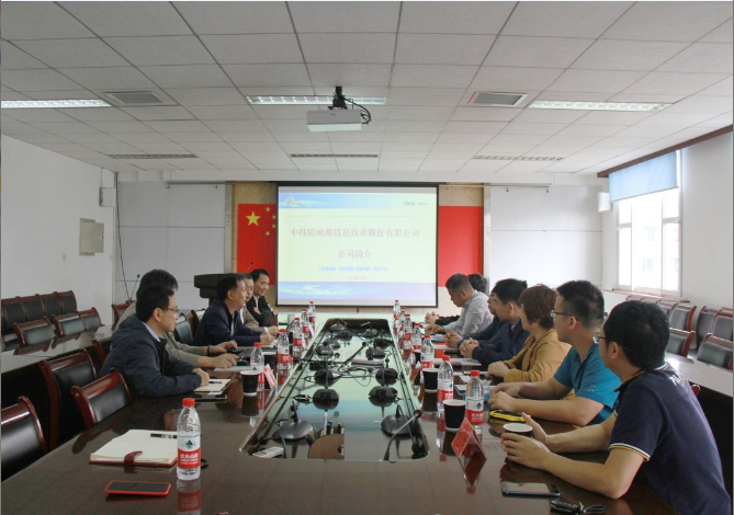 2019年10月11日上午,中關村智慧城市信息化產業聯盟辛繼巍秘書長、海南省辦公廳陳紅軍副主任及會員企業代表一行7人,蒞臨中科院成都信息技術股份有限公司(以下簡稱“中科信息”)考察,中科信息監事會主席帥紅濤及相關部門負責人出席座談會。