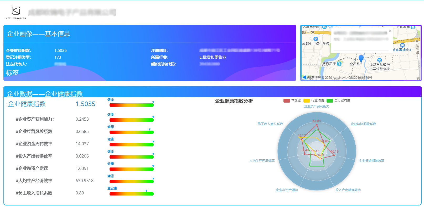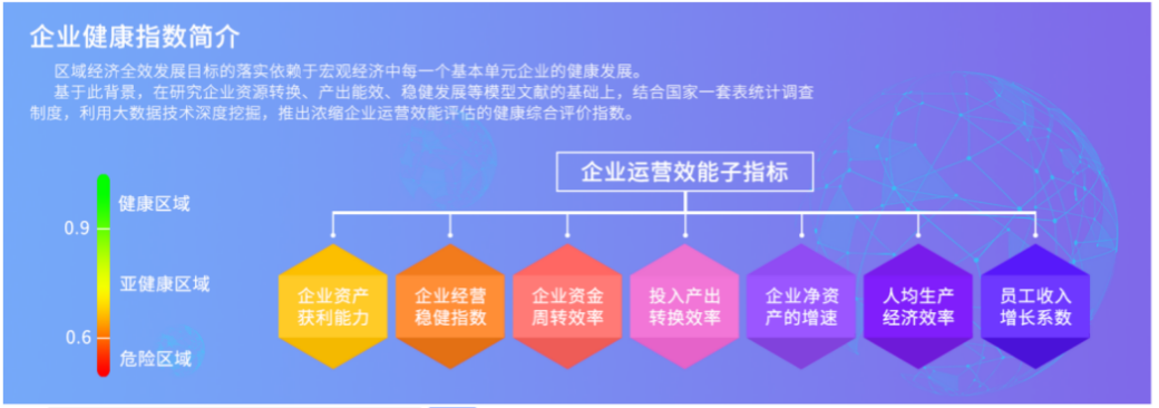 利用大數據匯聚、處理、分析挖掘、可視化展示等技術支撐,聚焦監測地區的經濟運行大局,為地方政府研判經濟運行態勢提供輔助支撐,不斷提升政府精細化決策能力。基于企業基礎指標數據,利用大數據技術深度挖掘,建立企業健康指數監測模型和企業貢獻指數監測模型,輔助經濟主管部門及領導,更加客觀、準確地判斷每個企業的健康發展與貢獻情況,從而科學預判企業的成長潛力,提高監管精準性和政府領導決策能力。