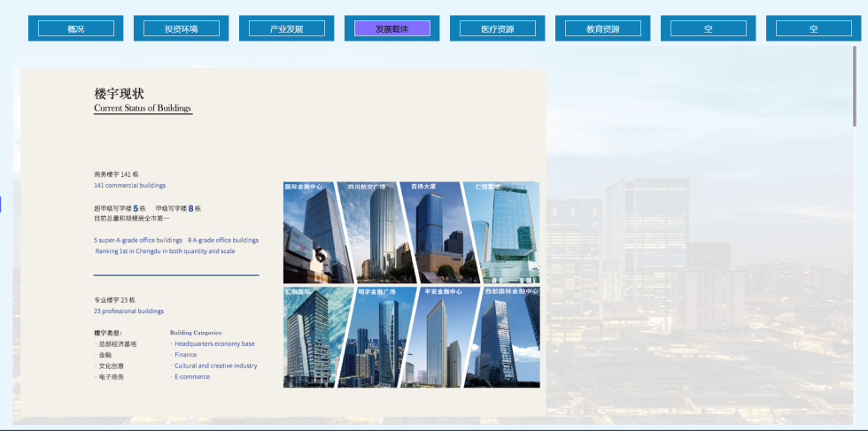 整合地區產業經濟數據和地理數據,利用可視化和地理信息技術對區域內的產業經濟和空間布局進行全新解讀,構建“產業經濟一張圖”,滿足地方政府、各級部門對城市經濟發展數據摸清、精準調度、精準發力,分析搞透、問題抓準、及時監管的要求。通過圖表結合的方式展示區域內整體招商情況,規劃設計、招商環境等信息,整合樓宇載體、土地資源、招商政策、招商動態等信息,并與移動端數據保持同步更新,提高招商便捷性的同時為部門或街道招商引資提供數據支撐,提高招商能力和水平,降低招商成本,促使地方經濟健康、快速發展。