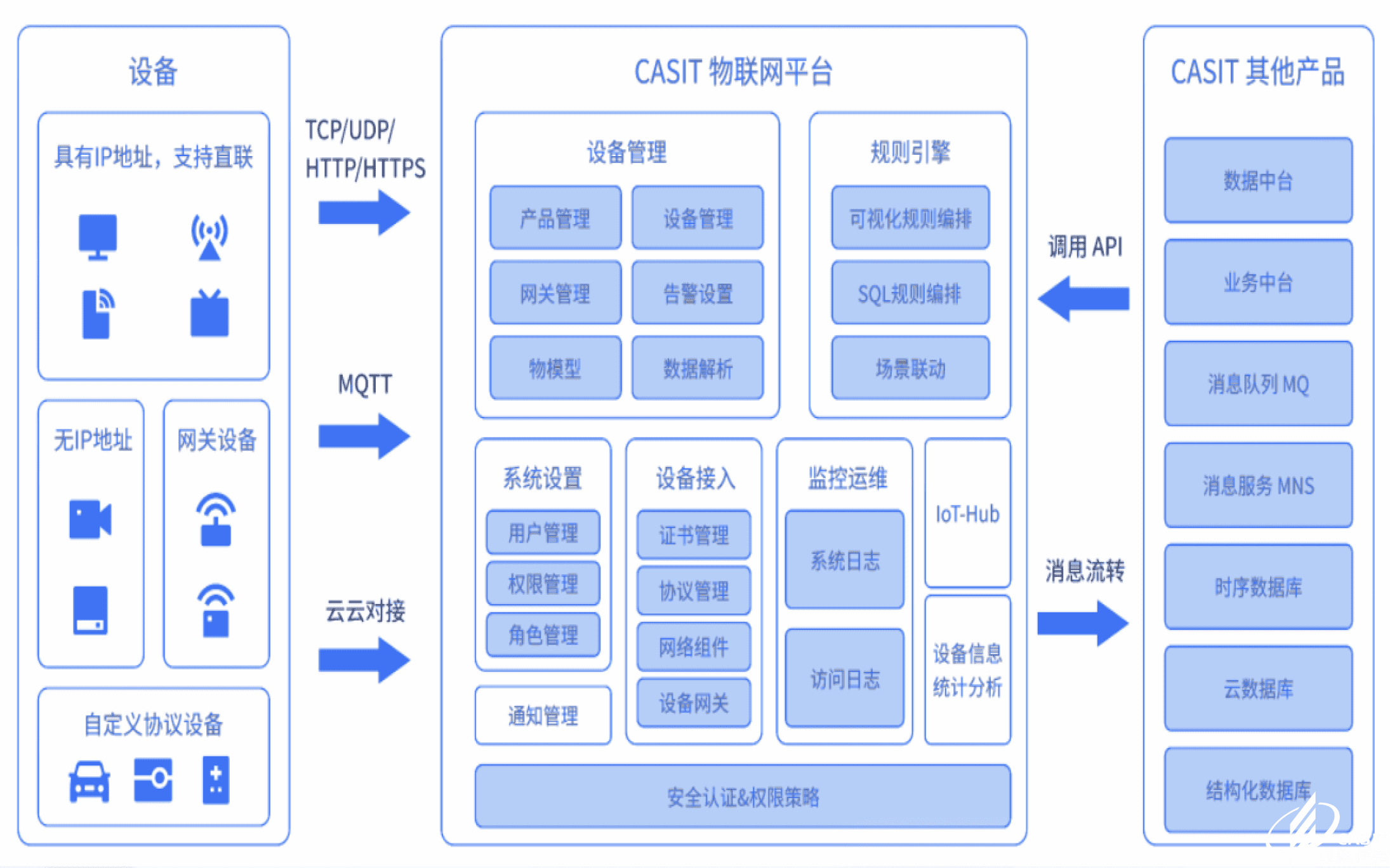 極云物聯(lián)網(wǎng)中臺(tái)是一個(gè)企業(yè)級(jí)物聯(lián)網(wǎng)基礎(chǔ)開發(fā)平臺(tái),可實(shí)現(xiàn)物聯(lián)網(wǎng)業(yè)務(wù)開發(fā)的眾多基礎(chǔ)功能,幫助企業(yè)快速建立物聯(lián)網(wǎng)相關(guān)業(yè)務(wù)系統(tǒng)。平臺(tái)集成了設(shè)備管理、數(shù)據(jù)安全通信和消息訂閱等能力,向下支持海量設(shè)備連接,采集設(shè)備數(shù)據(jù)上云;向上提供云端API,服務(wù)端可通過調(diào)用云端 API 將指令下發(fā)至設(shè)備端,實(shí)現(xiàn)遠(yuǎn)程控制;除此以外,平臺(tái)還提供規(guī)則引擎等功能。其中,設(shè)備接入與管理支持億級(jí)設(shè)備與云端建立安全可靠的雙向連接;可視化規(guī)則引擎提供設(shè)備與云上各產(chǎn)品之間的數(shù)據(jù)流轉(zhuǎn)。從而幫助用戶快速搭建垂直物聯(lián)網(wǎng)架構(gòu),高效實(shí)現(xiàn)場(chǎng)景化智能應(yīng)用。